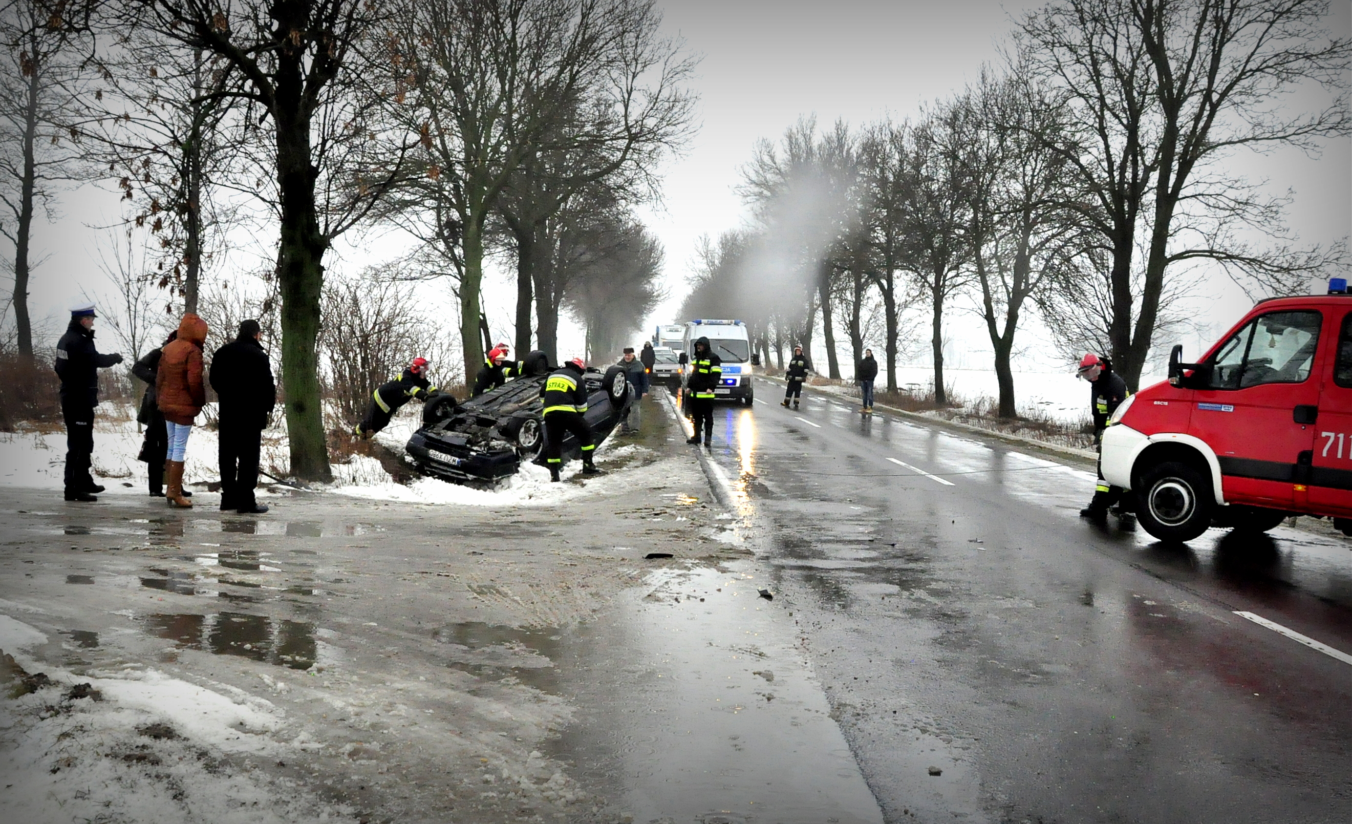 Wypadek wyglądał dość groźnie. Byliśmy na miejscy zdarzenia. Citroen leżał na dachu w rowie, aż dziw, że kierowcy nic się nie stało. Winnym spowodowania wypadku policja uznała kierowcę opla. Ukarany on został mandatem w wysokości 300 zł.