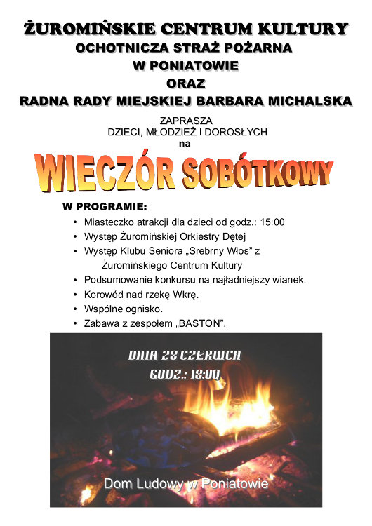 Na najbliższa sobotę 28 czerwca zaplanowano w Poniatowie wieczór sobótkowy
