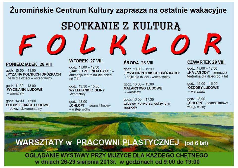 Żuromińskie Centrum Kultury zaprasza na ostatnie wakacyjne spotkania z kulturą. W tym tygodniu folklor.