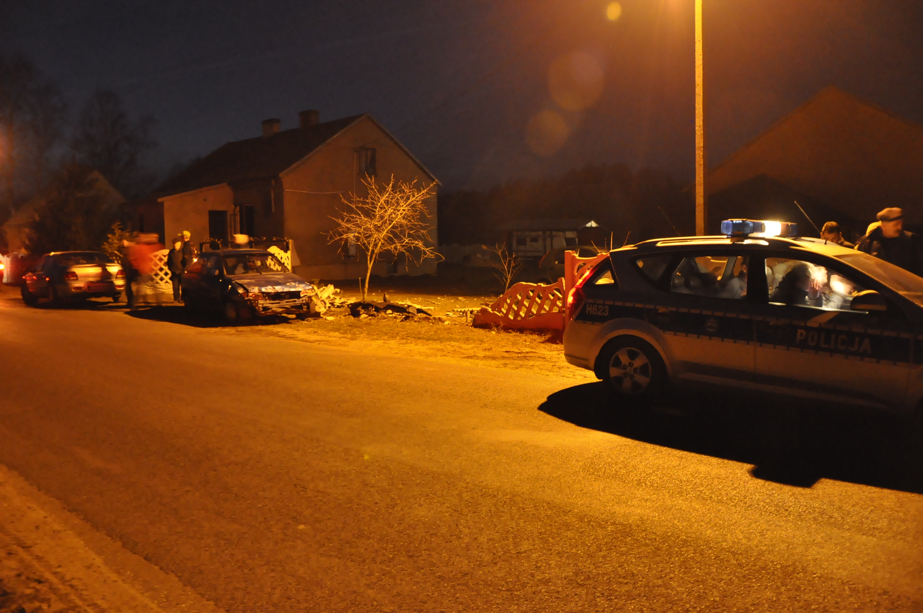 Do wypadku doszło w środę 6 marca o godzinie 17:55. Kierowca nie dostosował prędkości do panujących warunków, przestał panować nad pojazdem i z dużą prędkością uderzył w ogrodzenie jednej z posesji. Ogrodzenie zniszczone zostało na szerokości 8 metrów. Za ogrodzeniem stał samochód właściciela posesji, on też został uszkodzony.