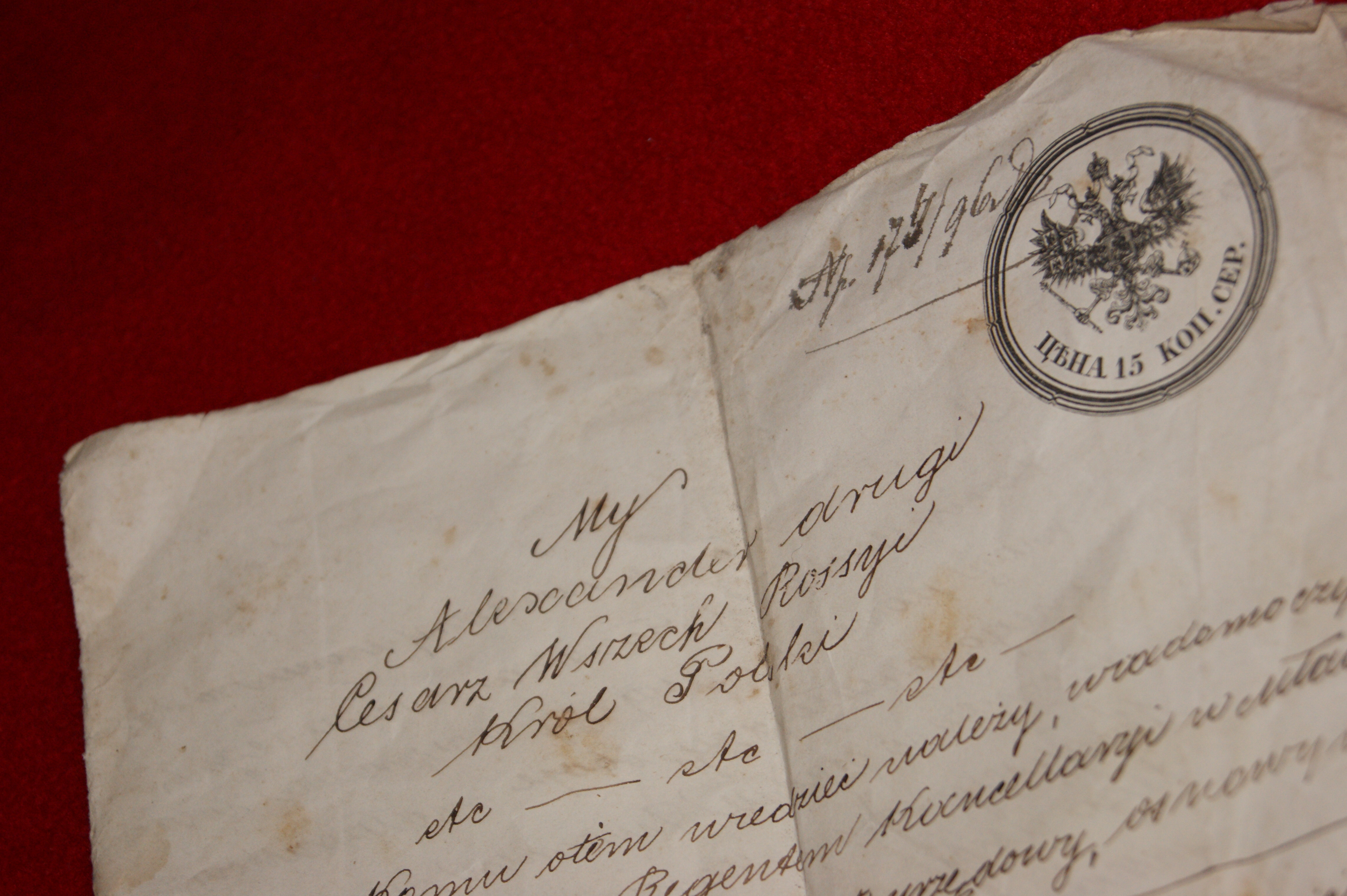 Po rozchyleniu pożółkłych kartek przeczytałem nagłówek: „My Aleksander drugi Cesarz Wszech Rossyi Król Polski etc…” A więc gdzie była wtedy Polska? Odpowiedź była smutna:– pewnie tylko w sercach Polaków…