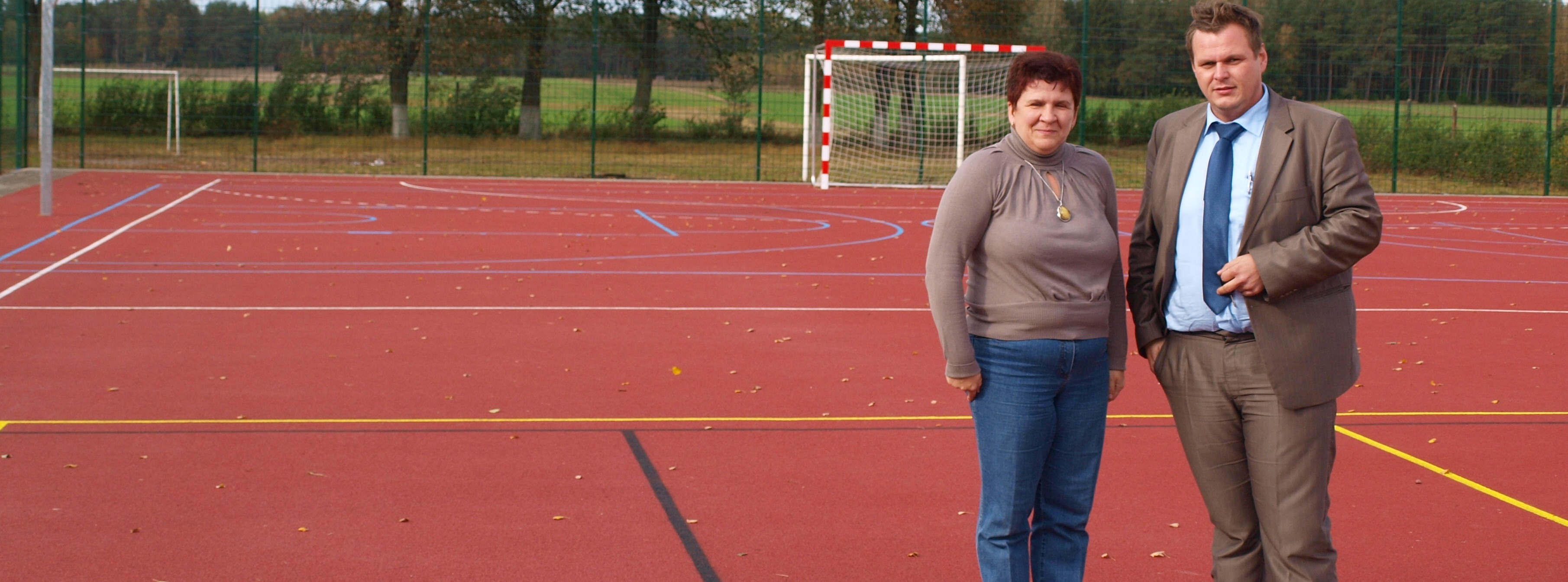 Boisko o nawierzchni poliuretanowej przystosowane jest do gry w piłkę nożna, piłkę ręczną, koszykówkę i tenis ziemny.
