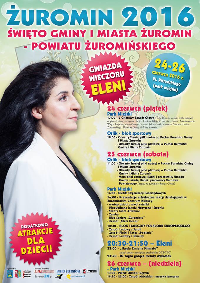 Świętowanie rozpocznie się w piątek 24 czerwca. O godzinie 17:00 na Placu Piłsudskiego odbędzie się bicie rekordu w ilości gitarzystów grających wspólnie utwory muzyczne. O godzinie 18:00 na boisku Orlik rozpocznie się turniej piłki nożnej oraz turniej piłki plażowej O Puchar Burmistrz Gminy i Miasta. Sobotnie świętowanie rozpocznie się na sportowo, O godzinie 11:00 zostanie rozegrany turniej piłki plażowej oraz mecz piłki siatkowej. Rywalizować będą radni i pracownicy UGiM Żuromin z radnymi i pracownikami Starostwa. Od godziny 14:00 ze sceny zacznie grać muzyka. Najpierw wystąpią dzieci z sekcji rytmiki, następnie: Niepubliczna Szkoła Muzyczna, Szkoły tańca ArtDance, Zumba, Klub Seniora, zespół „Silver Heads”. Wystąpi zespół ludowy z Serbi, Zespół Pieśni i Tańca „Podlasie” i Zespół Ludowy z Ukrainy. Gwiazda wieczoru – Eleni wystąpi o godzinie 20:30. O godzinie 22:00 na scenie wystąpi zespól grający przeboje lat 60, 80, 90. Sobotnie świętowanie zakończy dyskoteka. Natomiast niedziela będzie należała do orkiestr dętych. Dla publiczności zagra 12 orkiestr. Wieczorem do tańca będzie grał zespół MCMakler.