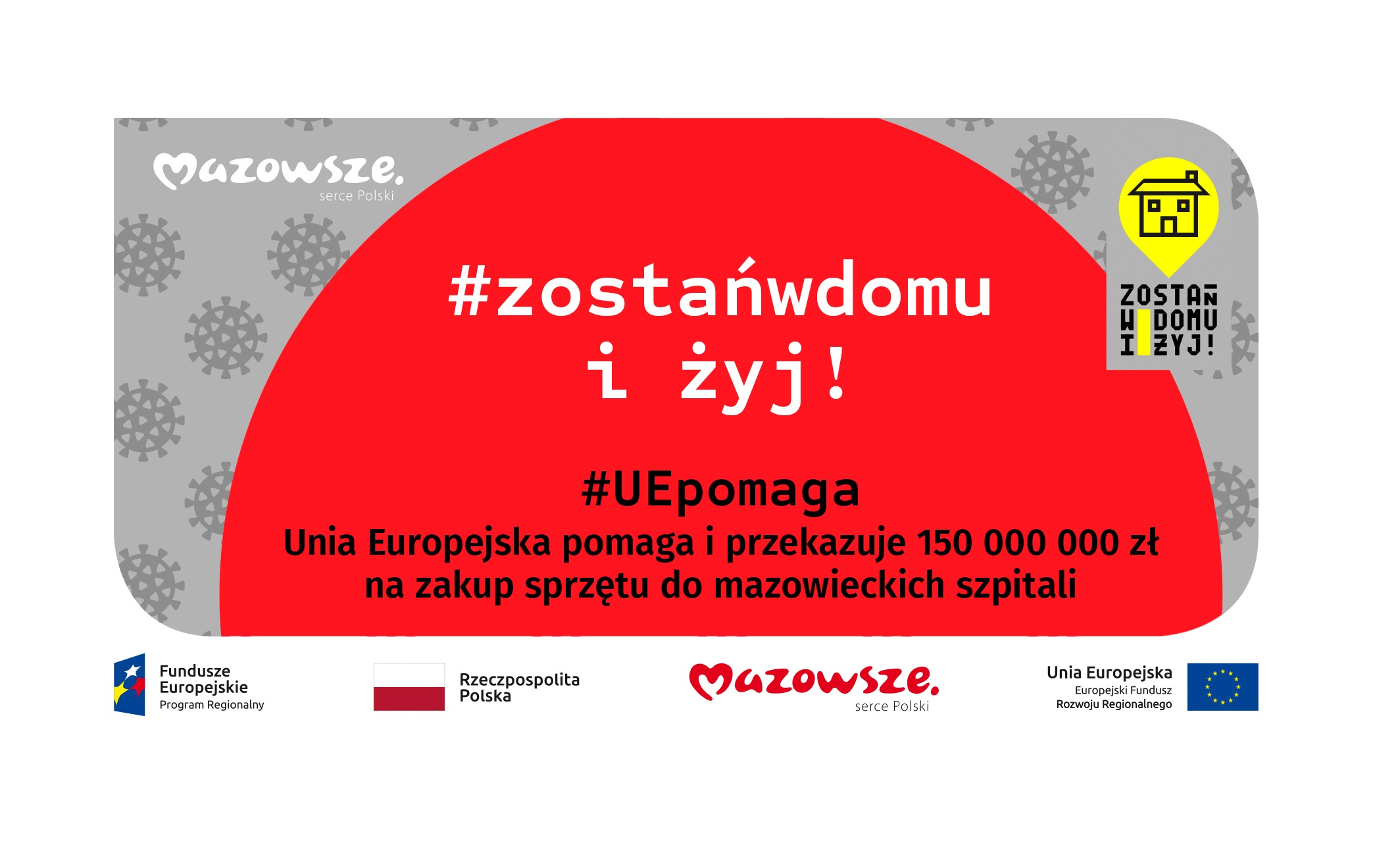 [i]Projekt „Zakup niezbędnego sprzętu oraz adaptacja pomieszczeń w związku z pojawieniem się koronawirusa SARS-CoV-2 na terenie województwa mazowieckiego” jest realizowany przez Samorząd Województwa Mazowieckiego. Całkowita wartość projektu wynosi 150 mln zł, z tego 124,9 mln zł pochodzi z funduszy europejskich z Regionalnego Programu Operacyjnego Województwa Mazowieckiego 2014-2020. Mazowsze jako pierwsze województwo w kraju uruchomiło środki unijne na ten cel.[/i][img]https://m.wm.pl/2020/04/orig/stopka-unijna-622611.jpg[/img]