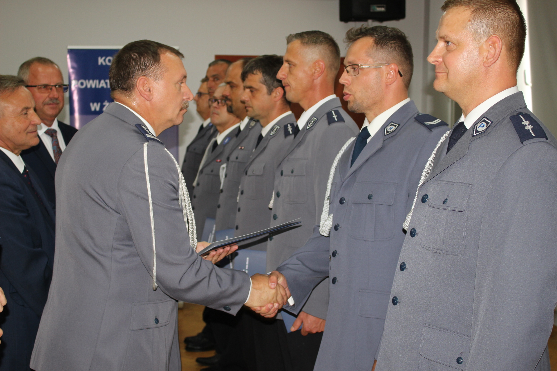 Na aspiranta sztabowego policji awansowali starsi aspiranci Marcin Gołąb, Mirosław Kwiatkowski i Tomasz Piechota. Starszym aspirantem policji zostali aspiranci Zbigniew Barchanowicz, Piotr Goszczyński i Michał Sznyter, a aspirantem policji młodsi aspiranci Mirosław Grygo, Bogusław Kujawa i Wojciech Purzycki. Młodszym aspirantem policji mianowani zostali sierżanci sztabowi Tomasz Łopiński i Sławomir Sztramski, starszym sierżantem policji sierżanci Rafał Grzybowski i Przemysław Żochowski, a sierżantem policji posterunkowy Tomasz Dudek. Akty mianowania wręczali funkcjonariuszom komendant insp. Witold Lemański, poseł na Sejm Waldemar Olejniczak oraz starosta Jerzy Rzymowski.
