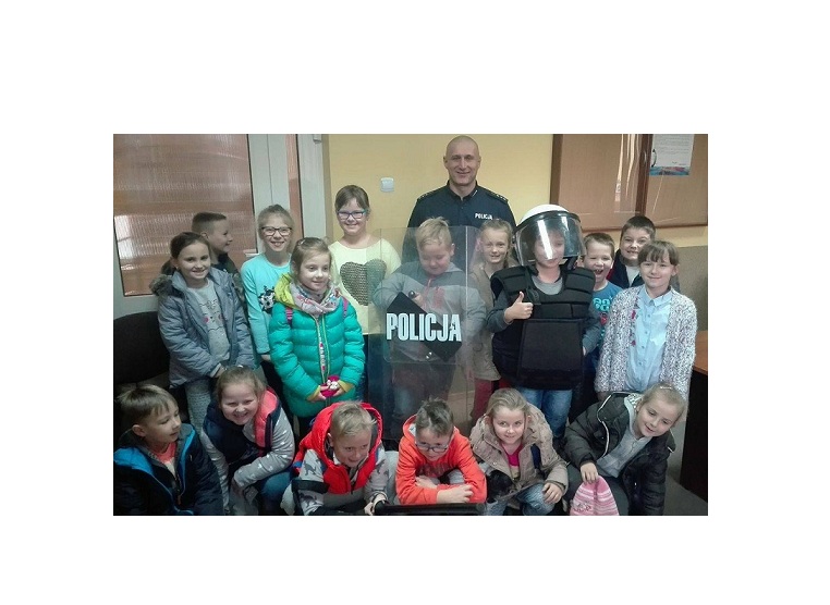 Uczniowie klas I-III wraz ze swoimi opiekunami chcieli zobaczyć, jak wygląda praca policjantów od kuchni. St. asp. Robert Wierciński oprowadził dzieci po budynku, a także opowiadał o swoim zawodzie oraz udzielał odpowiedzi na zadawane przez uczniów pytania. Pomimo dużego zainteresowania rozmową z mundurowym dzieci z niecierpliwością czekały aż będą mogli przymierzyć policyjny strój.