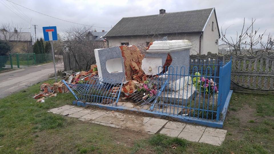 45-letni mężczyzna staranował przydrożną figurkę w Wiadrowie. Policja czeka na wyniki badania krwi sprawcy.