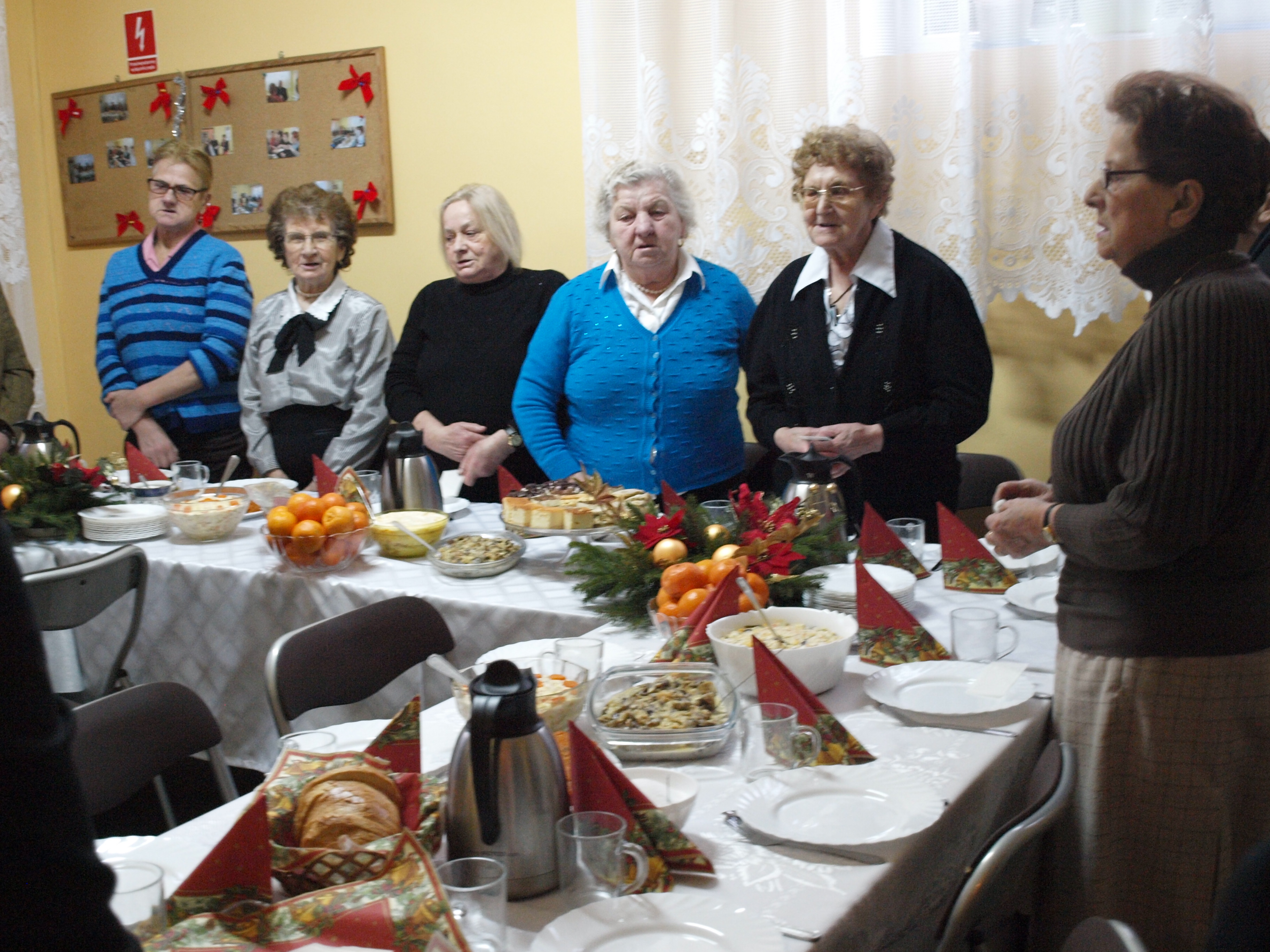 Życzenia złożył również Starosta Powiatu Żuromińskiego i Burmistrz Gminy i Miasta Żuromin. Był czas na dzielenie się opłatkiem i składanie życzeń. Potem wszyscy zasiedli do stołu. Wigilijne potrawy przygotowali pracownicy Caritasu. Były między innymi pierogi z kapustą i grzybami, krokiety, paszteciki, barszcz i ryba. W niezwykłą świąteczną atmosferę wprowadziły kolędy śpiewane przez uczestników wigilii. Na zakończenie dla samotnych wystąpiła młodzież z żuromińskiego Gimnazjum nr 1, przedstawiając świąteczny repertuar. Uczniowie przygotowali również upominki dla samotnych – własnoręcznie zrobione kartki bożonarodzeniowe z życzeniami. Dzięki takim spotkaniom starsze samotne osoby mogą choć na chwilę zapomnieć o swoich problemach. Podczas takich wigilii nie brakuje wzruszeń i ciepła zarówno ze strony pracowników Caritasu, jaki jego podopiecznych.