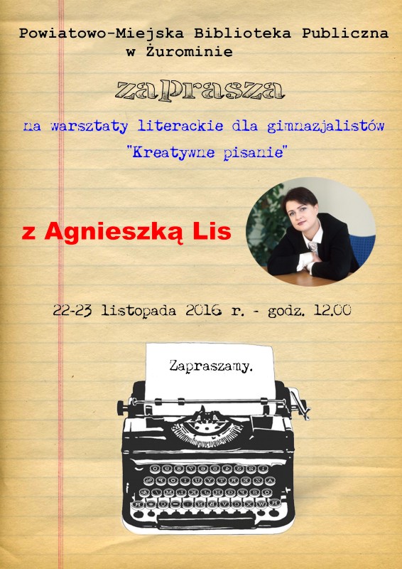 W dniach 22 – 23 listopada w Powiatowo – Miejskiej Bibliotece Publicznej w Żurominie odbędą się warsztaty literackie pod nazwą „Kreatywne pisanie”.
