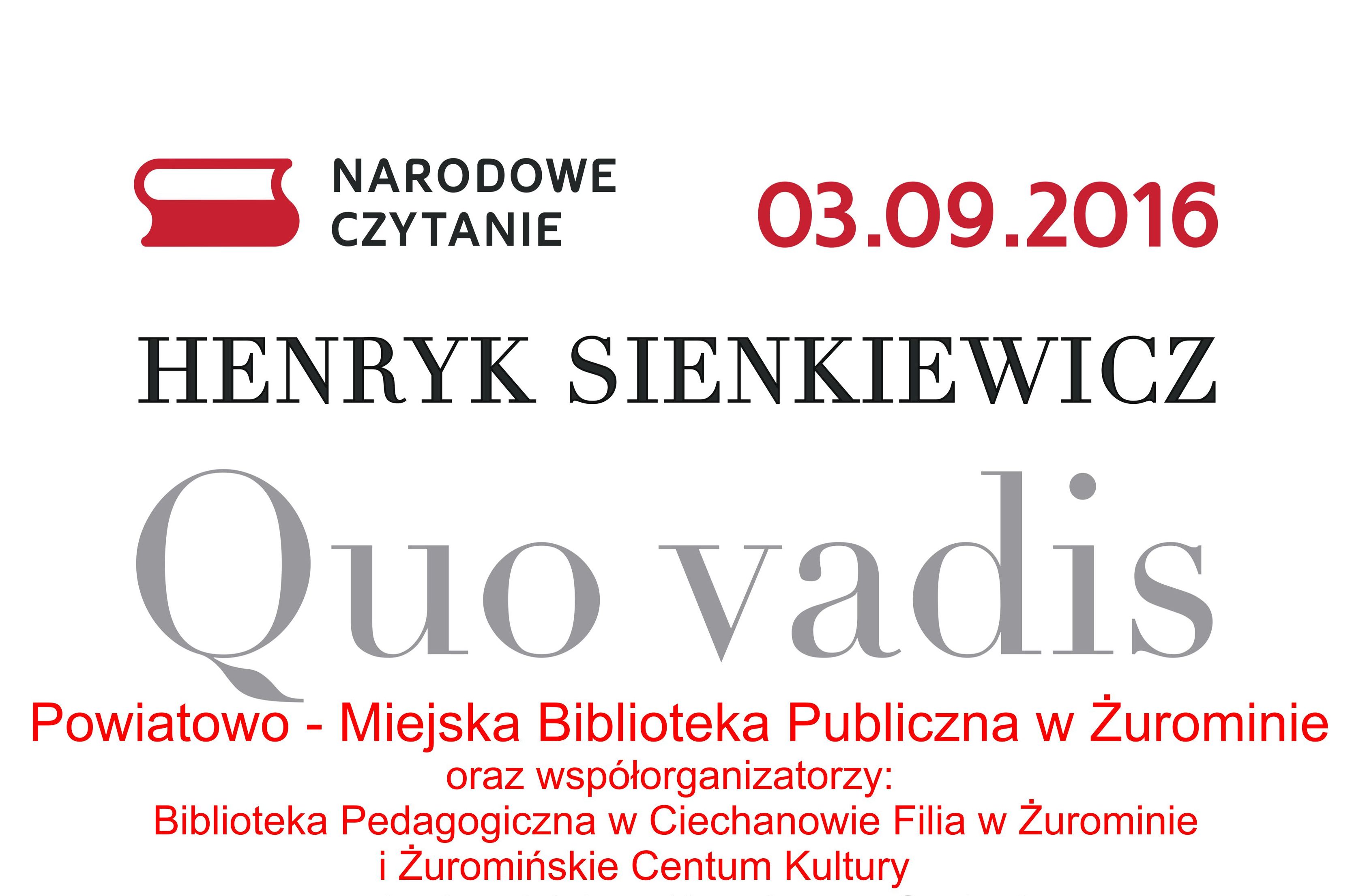 W sobotę 3 września odbędzie się w Żurominie wielkie czytanie Quo vadis. Na placu między kościołem i kinem mieszkańcy miasta i powiatu będą na głos czytać to wielkie dzieło polskiej literatury. Do akcji zgłosiło się już około 50 osób. Wśród nich starosta powiatu Jerzy Rzymowski, czy burmistrza Aneta Goliat.