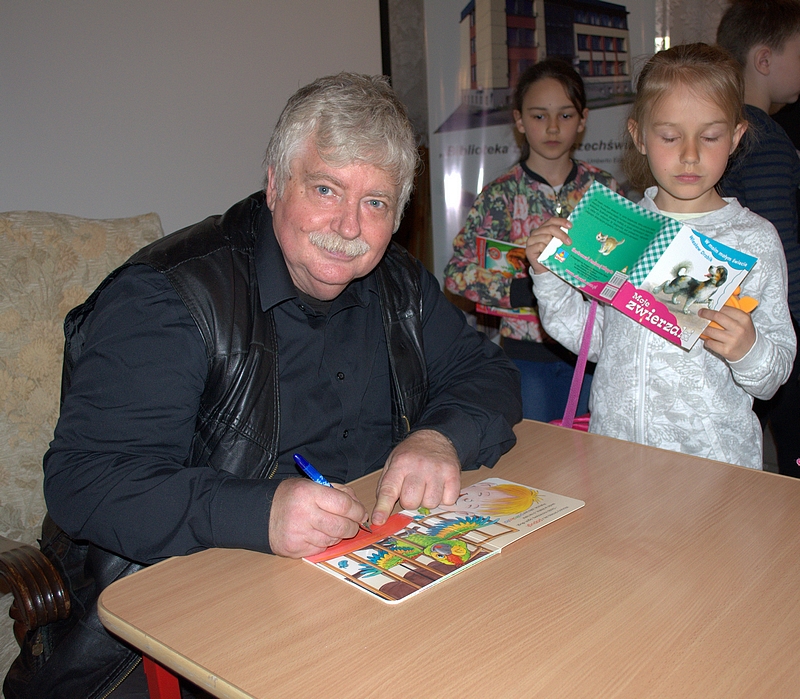 Dzieci lubią, kiedy czytają im dorośli. W ubiegłą środę w Powiatowo-Miejskiej Bibliotece Publicznej uczniom Szkół Podstawowych z Zielonej, Sinogóry i Żuromina czytał pisarz Wiesław Drabik. Dzieci wysłuchały między innymi: “Magiczne literki”, “Na pomoc”, “Łakomczucha”. Atmosfera spotkania była wspaniała, autor przygotował konkursy z nagrodami dla małych słuchaczy. Dzieci chętnie brały w nich udział. Każdy otrzymał upominek, również Wiesław Drabik. Na koniec spotkania uczniowie podarowali pisarzowi bukiet róż oraz lizaków.