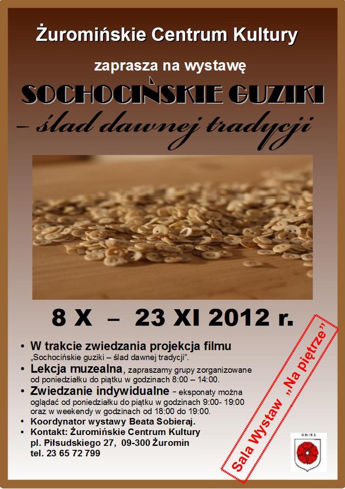 W dniach 8 - października - 23 listopada w sali wystawowej ŻCK będzie można oglądać wystawę "Sochocińskie guziki - ślad dawnej tradycji".