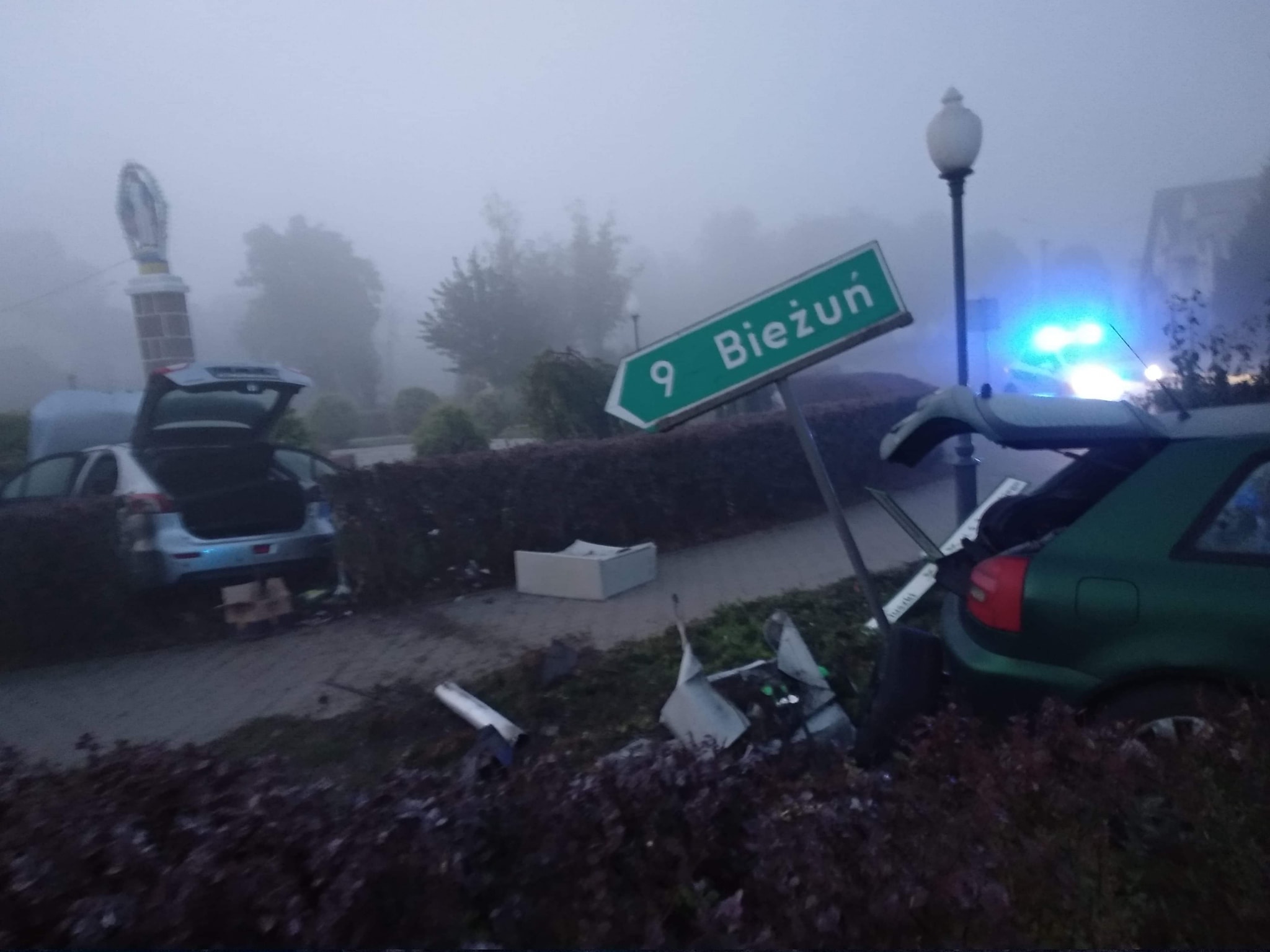 Huk obudził mieszkańców domów w centrum wsi ok. godz. 3.40. W parku, tuż obok figury Matki Boskiej, zauważyli dwa rozbite auta wpadły tam po tym, jak zderzyły się na głównym skrzyżowaniu, tuż przy budynku Urzędu Gminy.