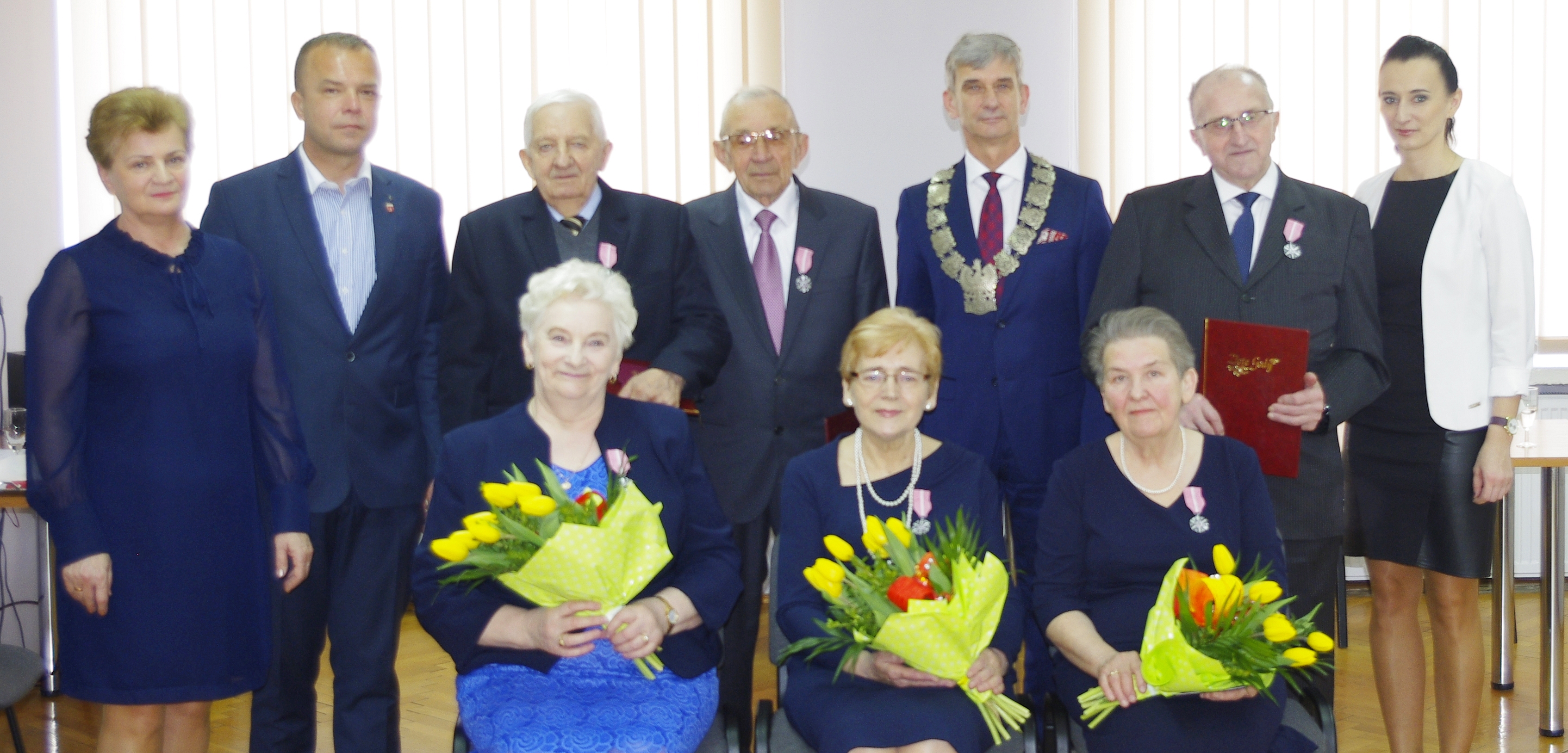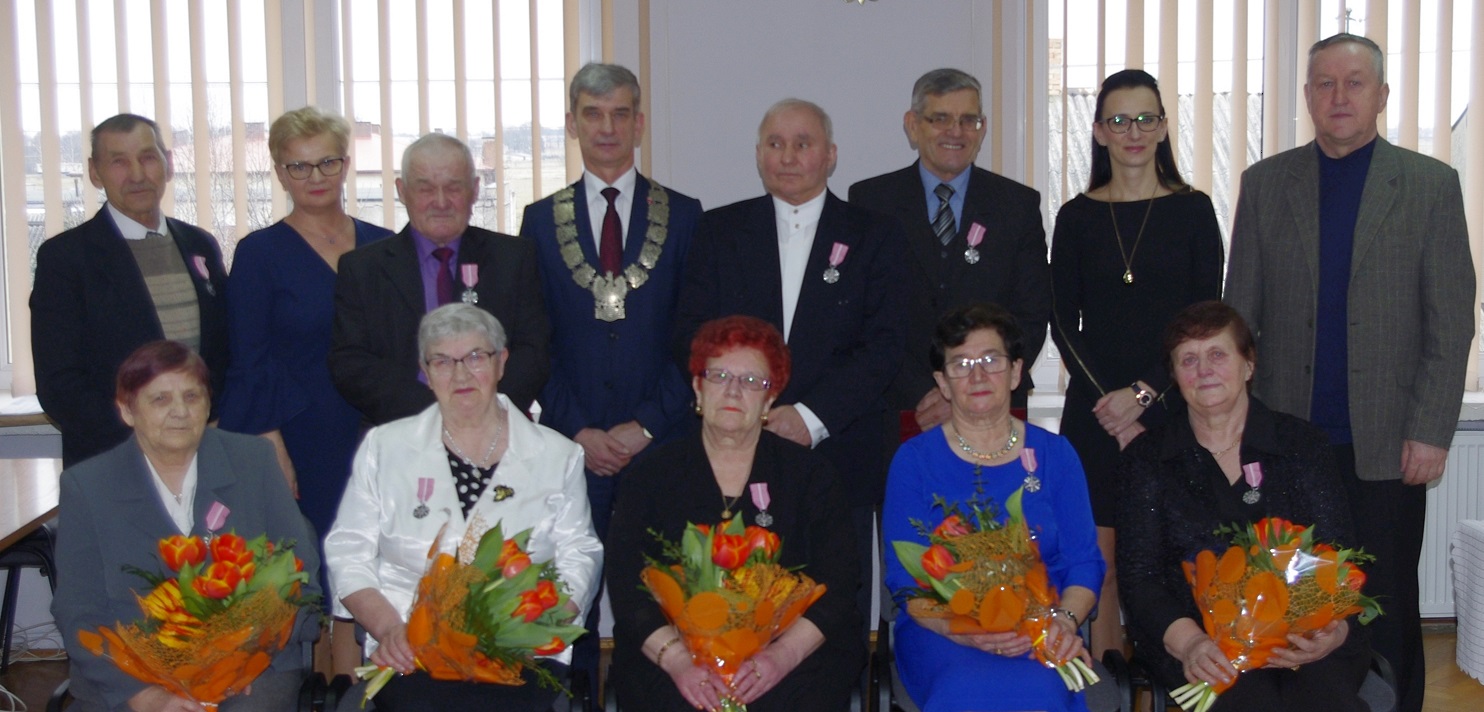 Dostojnym jubilatom odznaczenia te wręczał burmistrz Andrzej Szymański. Jednocześnie złożył im życzenia i podziękował za trud włożony w budowę trwałości małżeństwa i rodziny. Podkreślił przy tym, że stanowią piękny przykład i wzór do naśladowania dla przyszłych pokoleń. Do życzeń i gratulacji dołączyli także przewodniczący Rady Miejskiej Andrzej Sztybor oraz zastępca kierownika USC Nina Pachniewska.