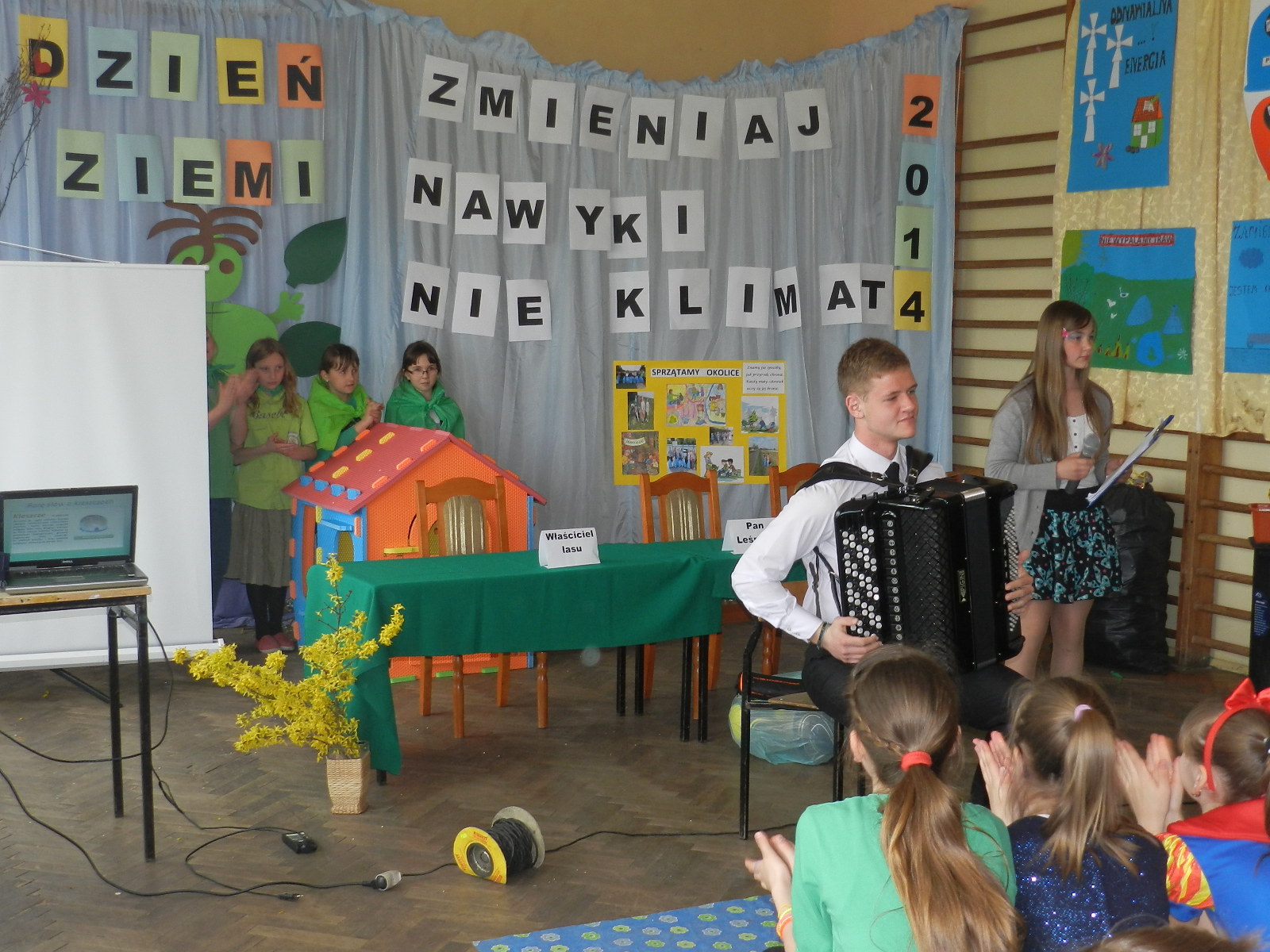 Na zakończenie wręczone zostały nagrody rzeczowe, dla uczniów najbardziej zaangażowanych w prace na rzecz najbliższego środowiska. W ramach obchodów, które w tym roku odbywają się pod hasłem „Zmieniaj nawyki a nie klimat” przez prawie dwa miesiące trwała w szkole zbiórka zużytych baterii, puszek aluminiowych i makulatury. Uczniowie klasy II i III brali udział w sprzątaniu okolicy pomnika przyrody, a dzieci wszystkich klas sprzątały las.