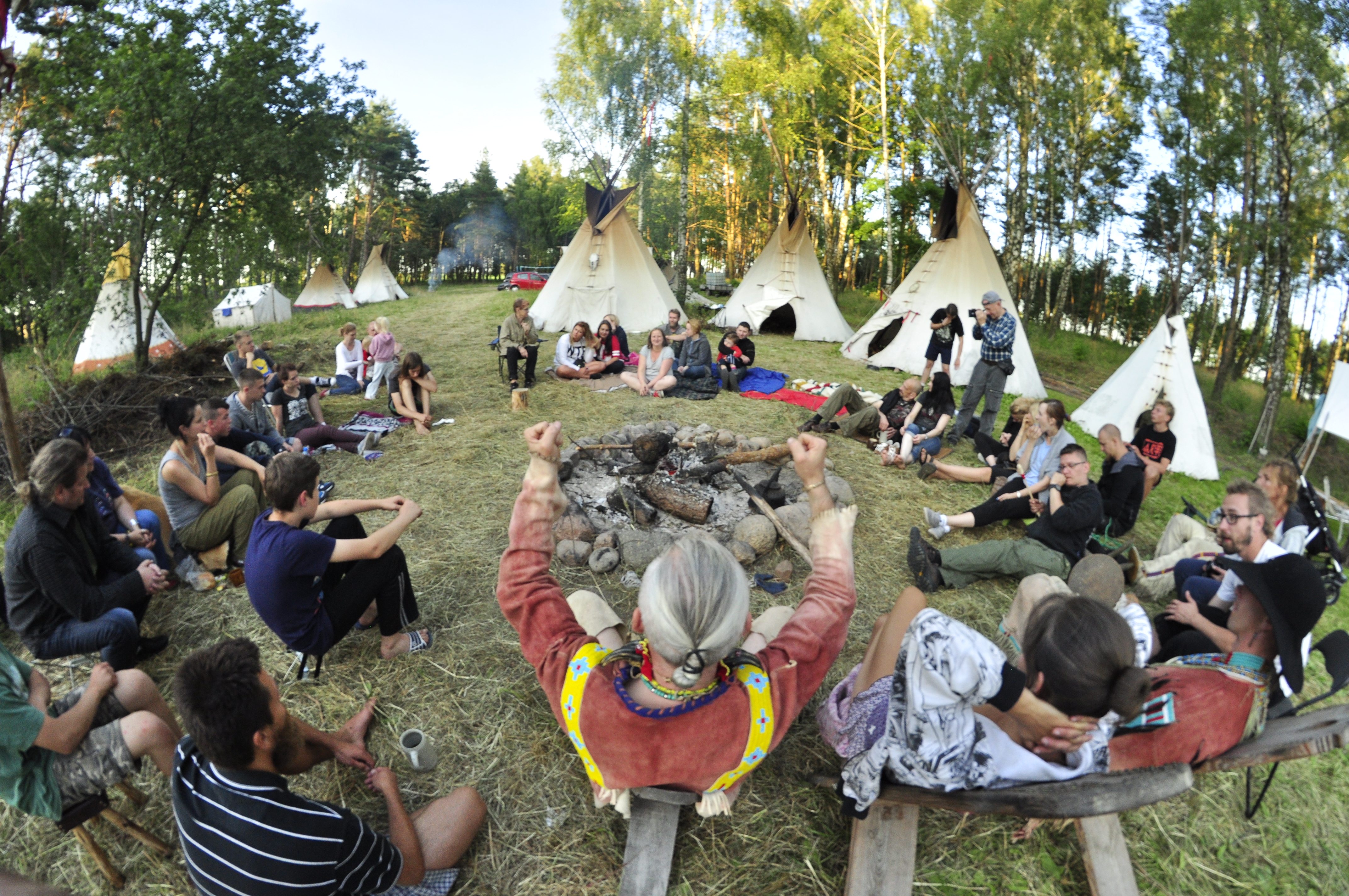 Otwarcie siedemnastej Szkoły Młodych Wilków odbyło się w niedzielę 29 czerwca. Indianie tradycyjnymi metodami rozpalili ognisko tzw. „centralne”. Tu od tej pory będą się zbierać i obradować uczestnicy obozu.