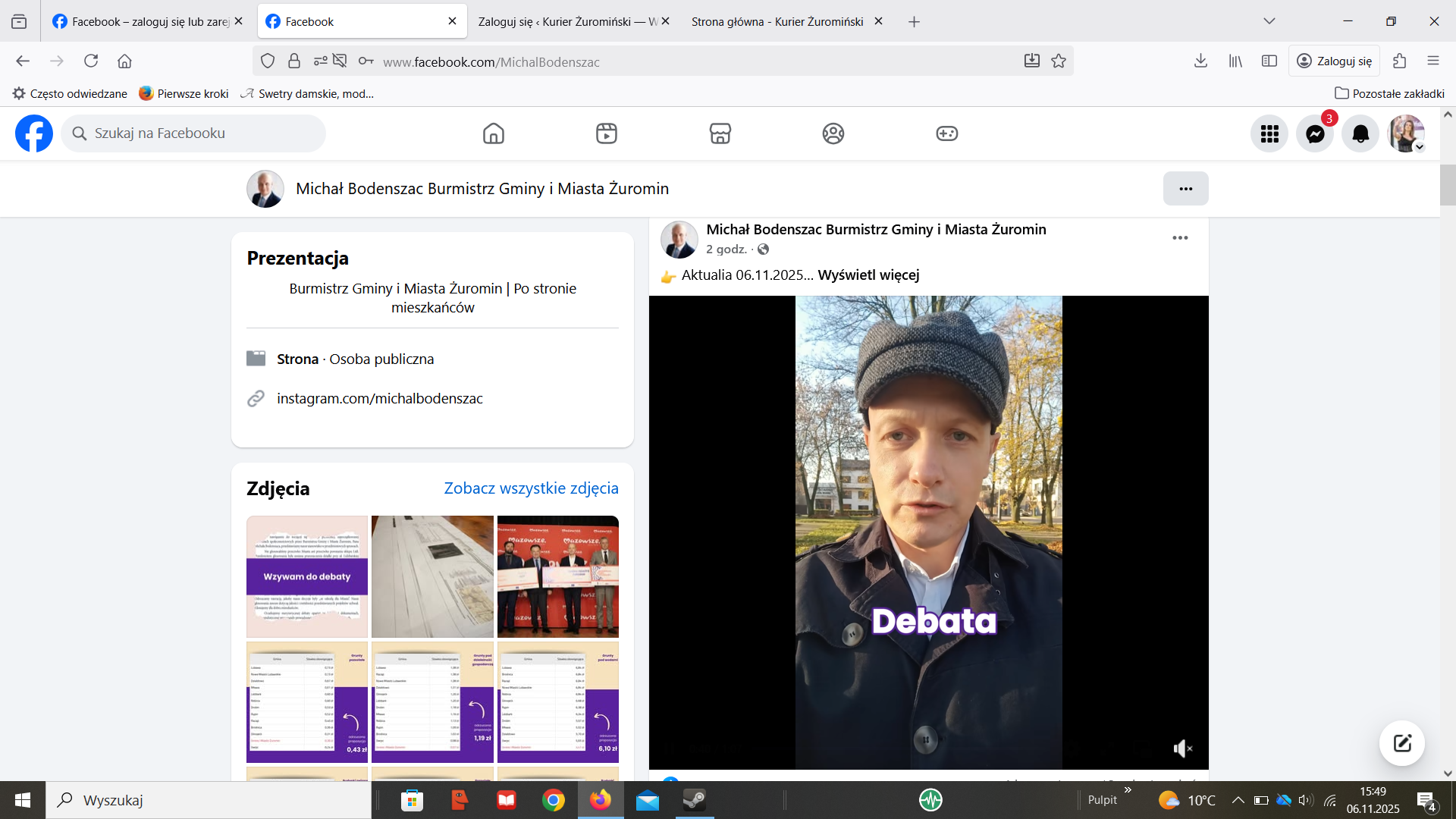 W zamieszczonym dziś nagraniu poinformował, że zaprasza mieszkańców na debatę o wolności słowa podkreślając, że radni zarzucili mu uprawianie propagandy w mediach społecznościowych. Burmistrz zaprosił zarówno mieszkańców, jak i radnych, którzy wydali oświadczenie, do debaty o rozwoju gminy oraz o tych ostatnio gorących kwestiach: podatkach oraz budowie centrum handlowego z Lidlem. Ma się ona odbyć 17 listopada o godzinie 18.00 w Żurom ińskim Centrum Kultury.