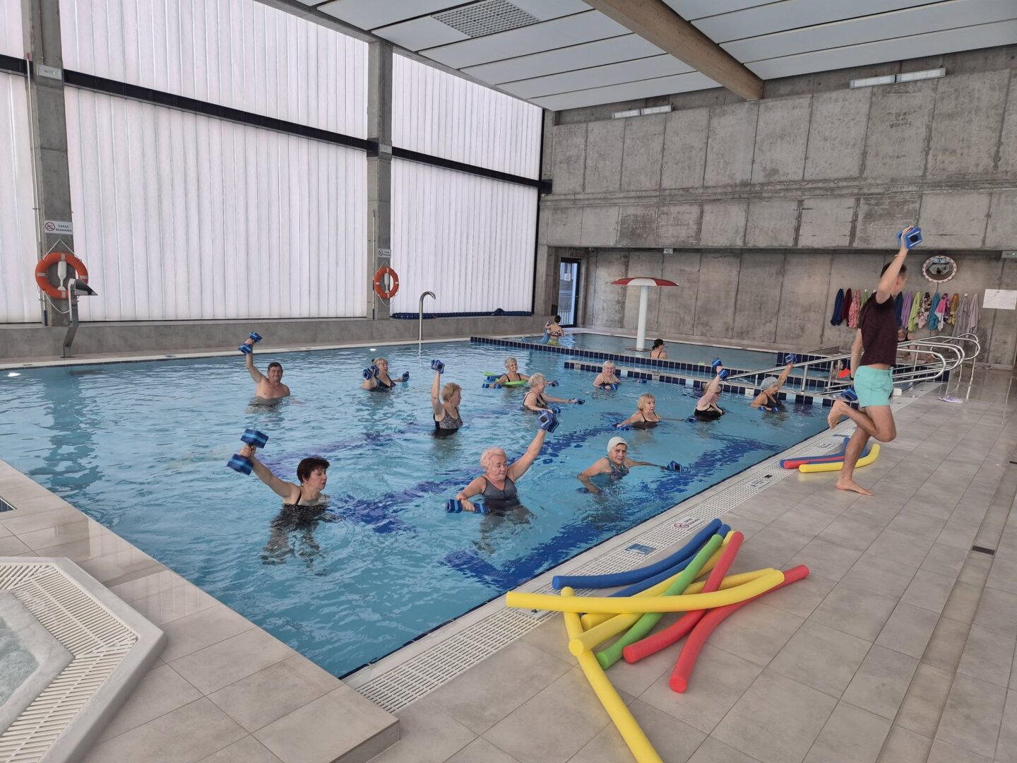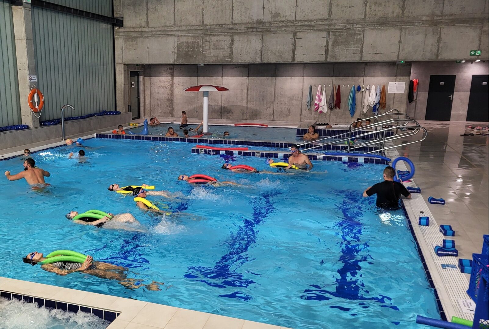 Aktywność fizyczna nie ma wieku! Zajęcia „Seniorzy w wodzie” to idealny sposób, by zadbać o zdrowie, kondycję i samopoczucie – w bezpiecznym, przyjaznym środowisku basenu. Podczas zajęć seniorzy wykonywali proste ćwiczenia w wodzie, które wzmacniają mięśnie, poprawiają ruchomość stawów, wspierają pracę serca i układu oddechowego, a przy okazji dostarczają mnóstwo radości i relaksu.