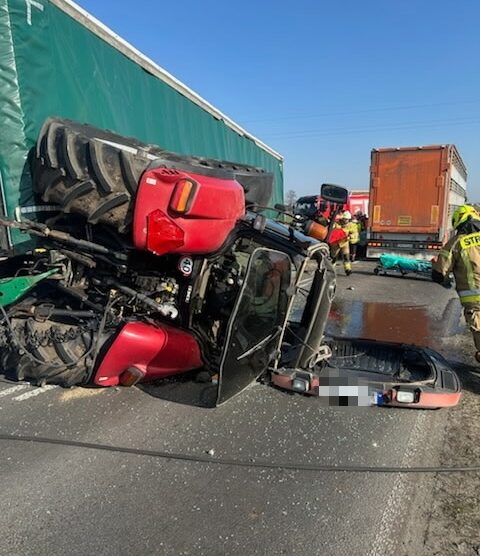 Na ulicy Mławskiej w Bieżuniu doszło do wypadku z udziałem samochodu osobowego, ciągnika rolniczego oraz pojazdu ciężarowego. Trzy osoby trafiły do szpitala.