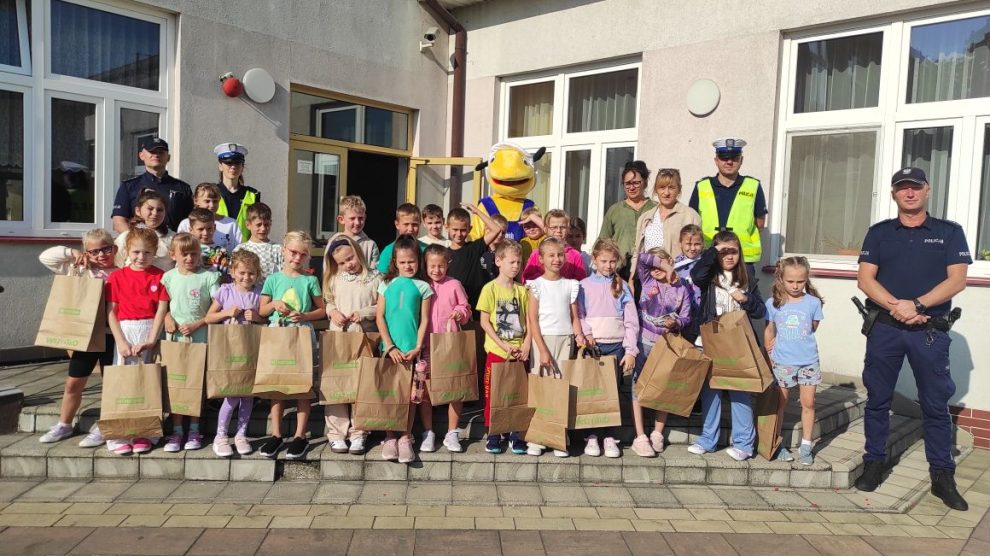Tym razem odblaski i niezbędne informacje, jak bezpiecznie iść do szkoły i z niej wrócić do domu otrzymały pierwszaki z SP w Lubowidzu. Tu też zawitała akcja “Bezpieczna droga do szkoły”, prowadzona przez policję, a wspierana przez naszą żuromińską Mrówkę.