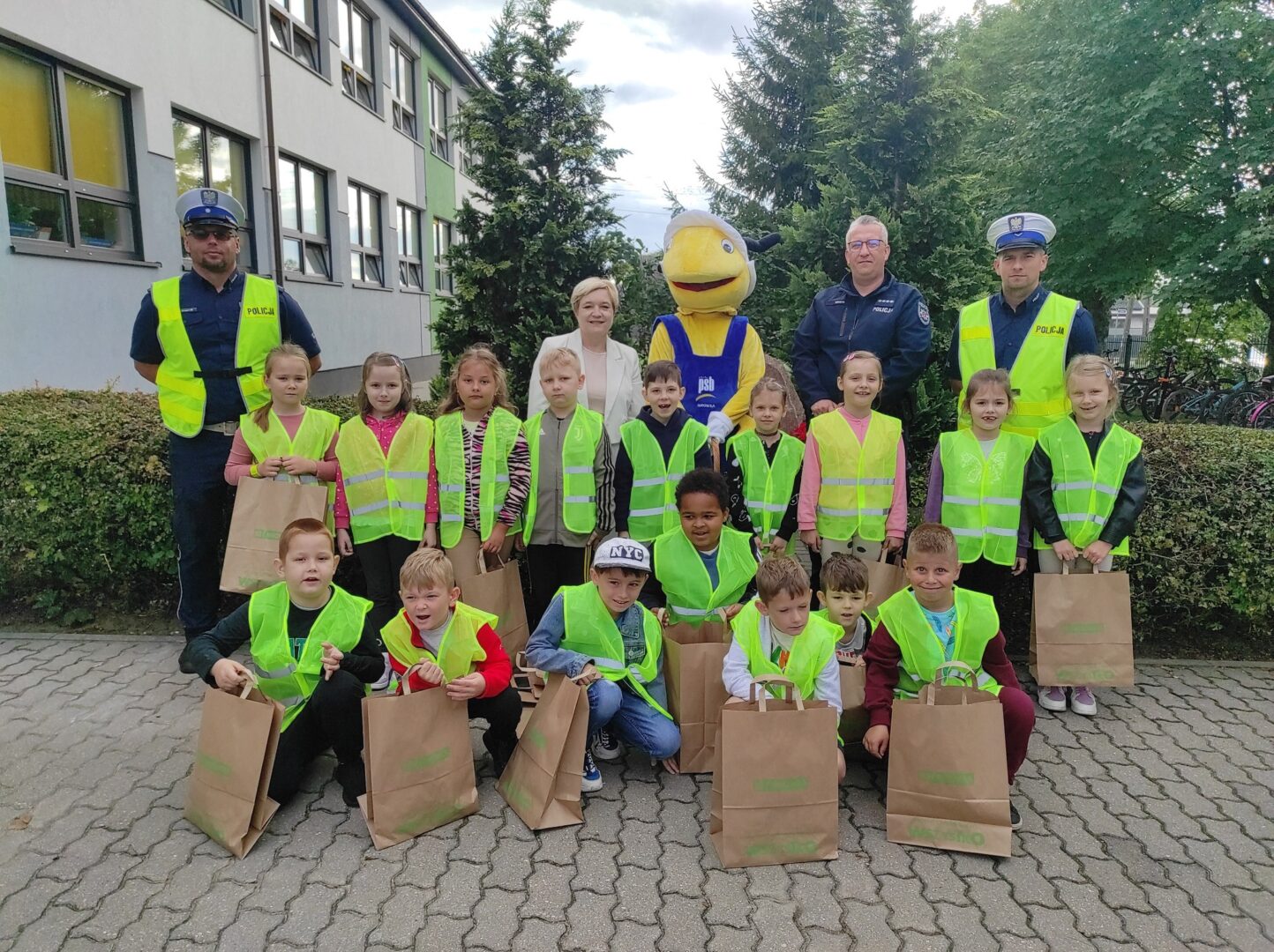 Jako ostatnią prezentujemy klasę pierwszą ze szkoły w Zielonej. Podczas wizyty policjanci uczyli pierwszaków i pokazywali im, jak prawidłowo korzystać z przejść dla pieszych w świetle obowiązujących przepisów. Zwracali uwagę aby ostrożność towarzyszyła każdemu bez znaczenia na wiek.