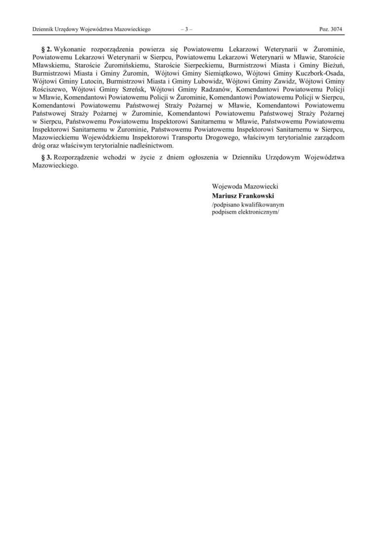 Wczoraj, 2 kwietnia, wojewoda mazowiecki wydał rozporządzenie zmieniające poprzedni akt, ustalając w nim :