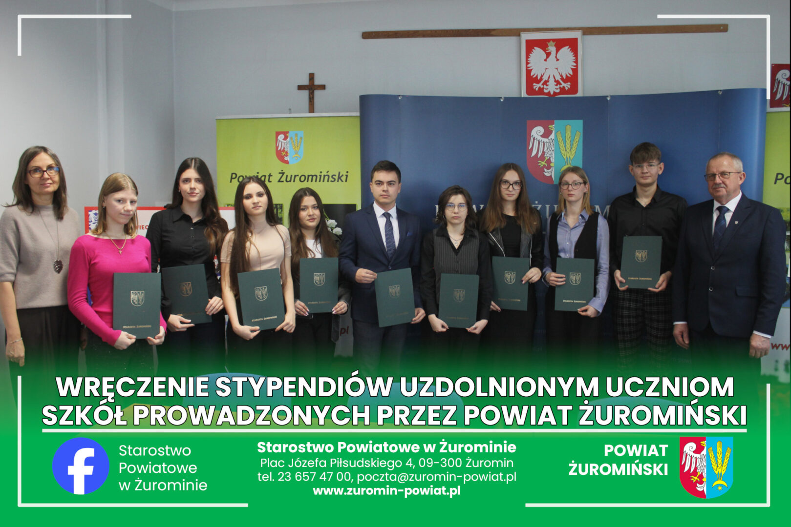 W dniu 12 listopada 2025r. Starosta Żuromiński Jerzy Rzymowski wraz z Dyrektorem Wydziału Zdrowia i Edukacji Joanną Jucewicz-Morawską wręczył stypendia uzdolnionym uczniom szkół prowadzonych przez powiat żuromiński. W uroczystości wzięli udział również rodzice uczniów, którzy otrzymali gratulacje oraz dyrektorzy szkół ponadpodstawowych.