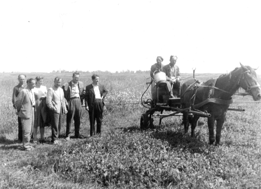 Pochodzi prawdopodobnie z początku lat 60. XX wieku. Przedstawia nowozakupiony przez miejscową Gminną Spółdzielnię opryskiwacz konny Ork-1A „Olza” oraz grupę osób. Dzięki uprzejmości Stanisława Kursy udało się zidentyfikować przedstawione na zdjęciu postacie. Są to, patrząc od lewej strony: NN, Eugeniusz Skubiszewski prezes Gminnej Spółdzielni w Bieżuniu, Alina Szymańska-księgowa w GS Bieżuń, Franciszek Szymański – kierownik magazynów Państwowych Zakładów Zbożowych w Bieżuniu, Marian Kąkolewski – Inspektor Powiatowej Stacji Kwarantanny i Ochrony Roślin w Żurominie, Jan Spychała – kierownik Powiatowej Stacji Kwarantanny i Ochrony Roślin w Żurominie. Na opryskiwaczu siedzą od lewej pracownicy GS: Feliks Chmielewski oraz Zygmunt Ruszkowski. Sam opryskiwacz został wyprodukowany w Skoczowskich Zakładach Sprzętu Rolniczego i Ochronnego Przemysłu Terenowego pod Zarządem Przemysłu Terenowego w Katowicach.