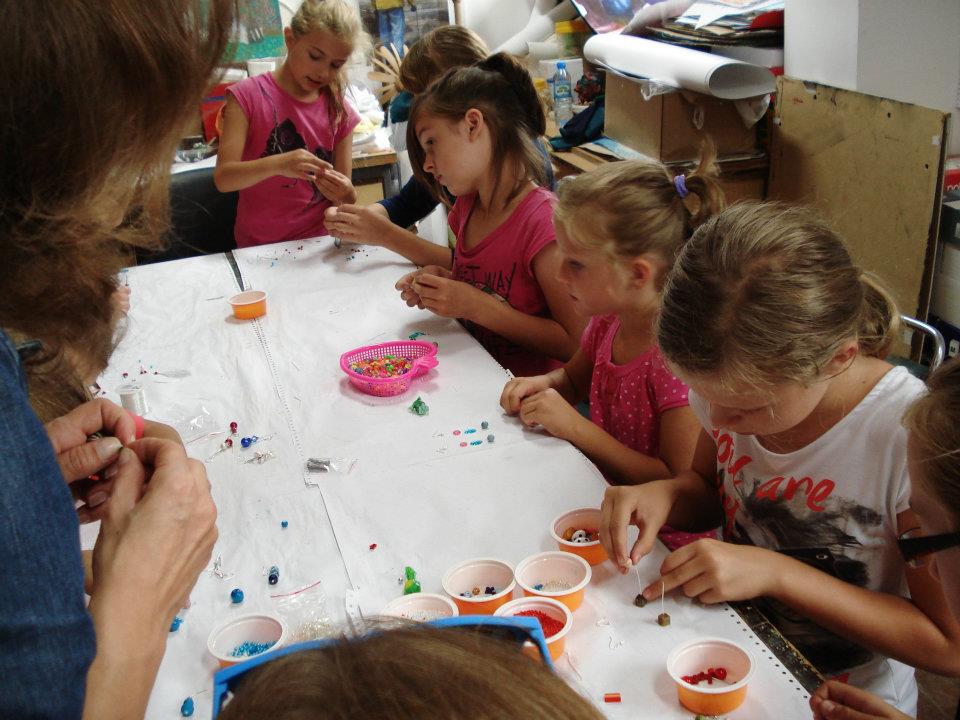 Drugie spotkanie pod nazwą „Jaskinie i szałasy – domy na wszech czasy” wiązało się z budowaniem i dekorowaniem dawnej siedziby. Zapoznali się również z kilkoma informacjami dotyczącymi mieszkań naszych przodków. Bardzo dużym powodzeniem cieszyły się zajęcia „Korale i brosze – biżuteria za grosze”. Na tych zajęciach dzieci tworzyły różne ozdoby z gliny, sznurka, drutu i gotowych elementów. Kolejne spotkanie „Surduty i zapaski – modowe wynalazki”, polegało na wykonaniu torebek, które przyozdobiono koralikami. Ostatnie lipcowe spotkanie pod nazwą „Sznurki plecione – artystycznie zrobione” było związane z dawnymi technikami zdobienia i wykonywania przedmiotów za pomocą sznurków i różnego rodzaju supłów. Na tym spotkaniu uczestnicy wykonywali wisiorki, kolczyki i bransoletki. Z części powstałych przedmiotów w sierpniu będzie można obejrzeć na wystawie. W sierpniu również są zaplanowane zajęcia plastyczne w ŻCK. Odbędzie się 5 takich spotkań: 14, 21, 22, 28 i 29 sierpnia w godzinach 14:00 – 17:00.