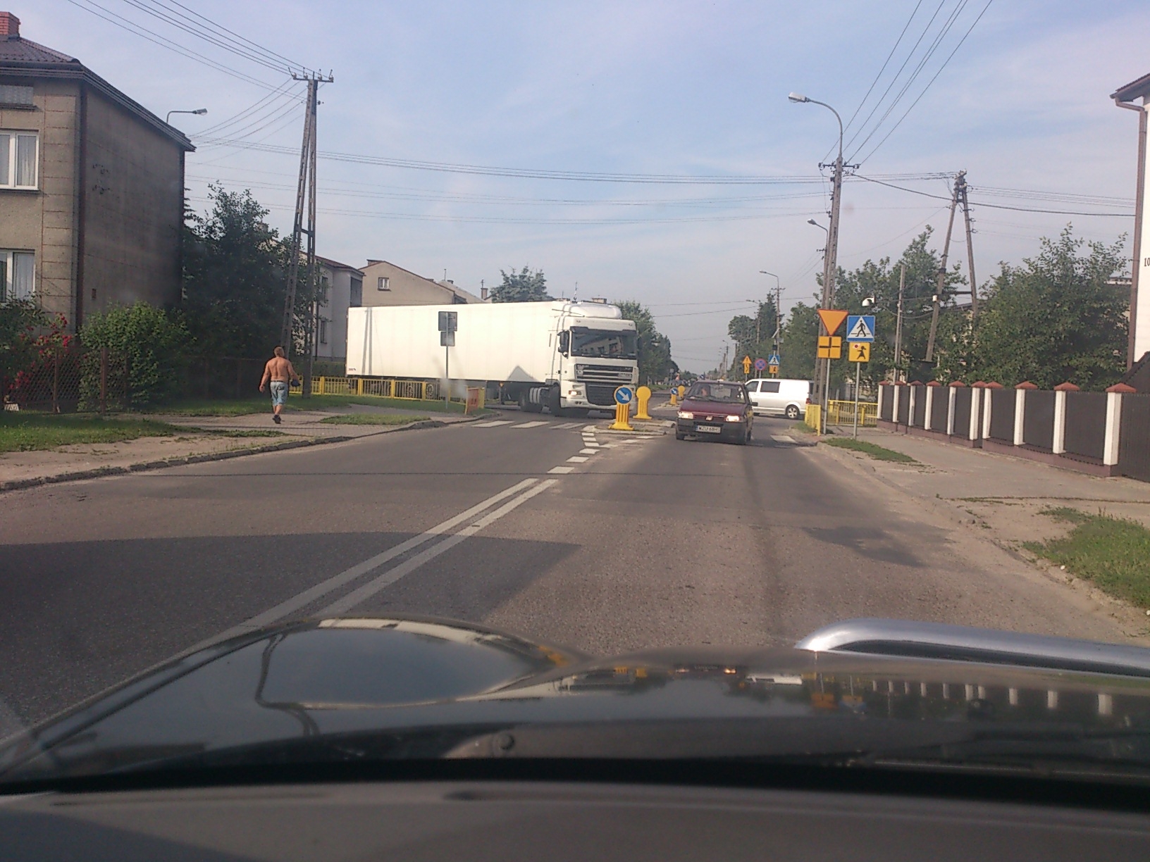 Kierowca TIR-a za nic nie mógł zmieścić się w zakręcie na skrzyżowaniu Mławska- Wyzwolenia – Żeromskiego – Wiadrowska, mimo że w zakręt próbował wjechać z lewego pasa ulicy Mławskiej. Zniecierpliwieni kierowcy zaczęli łamać przepisy omijając zablokowanego TIR-a. Kierowcy po kilkunastu minutach udało się przejechać krzyżówki. Szczęśliwie. Barierki również przetrwały ten manewr.