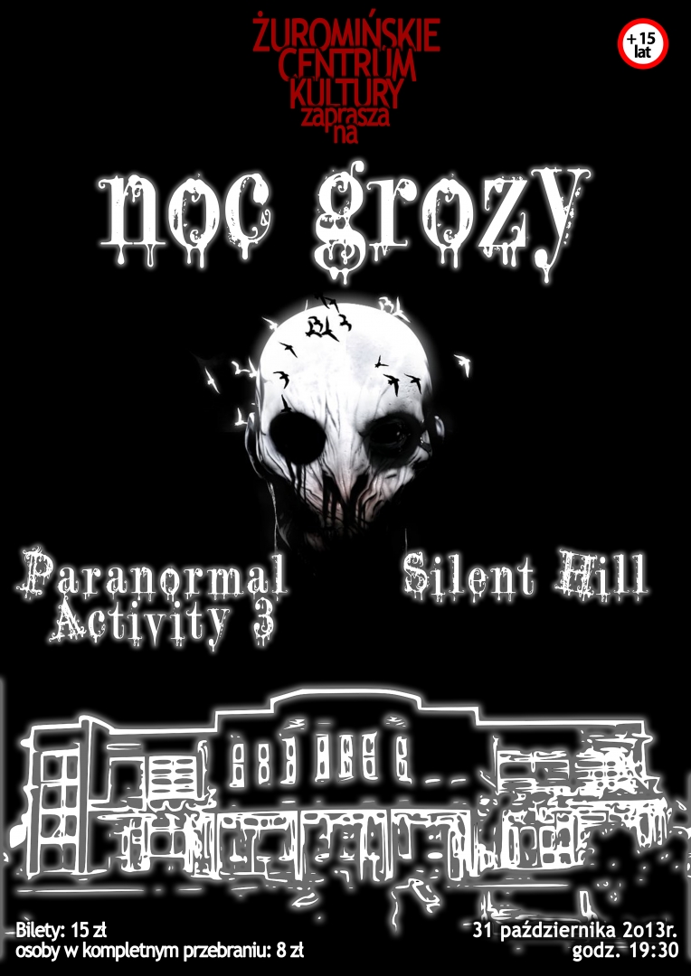 31 dzień października – Halloween. Z tej okazji w wielu miastach w Polsce dla dorosłych i nieco starszej młodzieży organizowane są imprezy kulturalne, występy teatralne czy projekcje kinowe. Nie inaczej jest w Żurominie. Żuromińskie Centrum Kultury dla osób powyżej piętnastego roku życia przygotowało projekcję filmową. Od godziny 19:30 tego dnia wyświetlone zostaną dwa filmy typu horror – Paranormal Activity 3 oraz Sillent Hill. Impreza jest biletowana. Koszt wstępu to 15 złotych. Dla osób w kompletnym przebraniu (np. wampira etc) jest to 8 złotych.