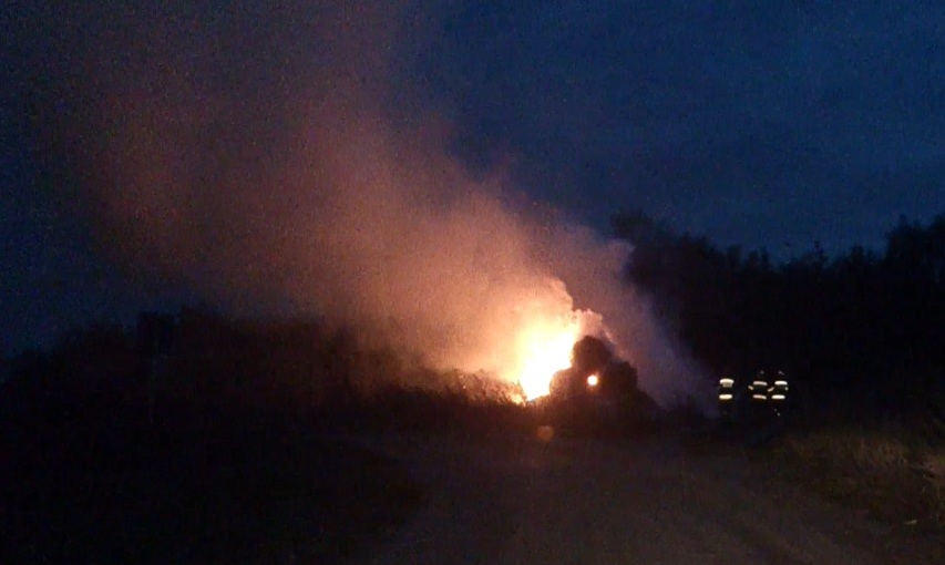 Tuż za “magazynami” palił się stóg złożony z bel słomy. Na miejscu pojawiła się policja, bo całe zdarzenie wygląda na podpalenie.