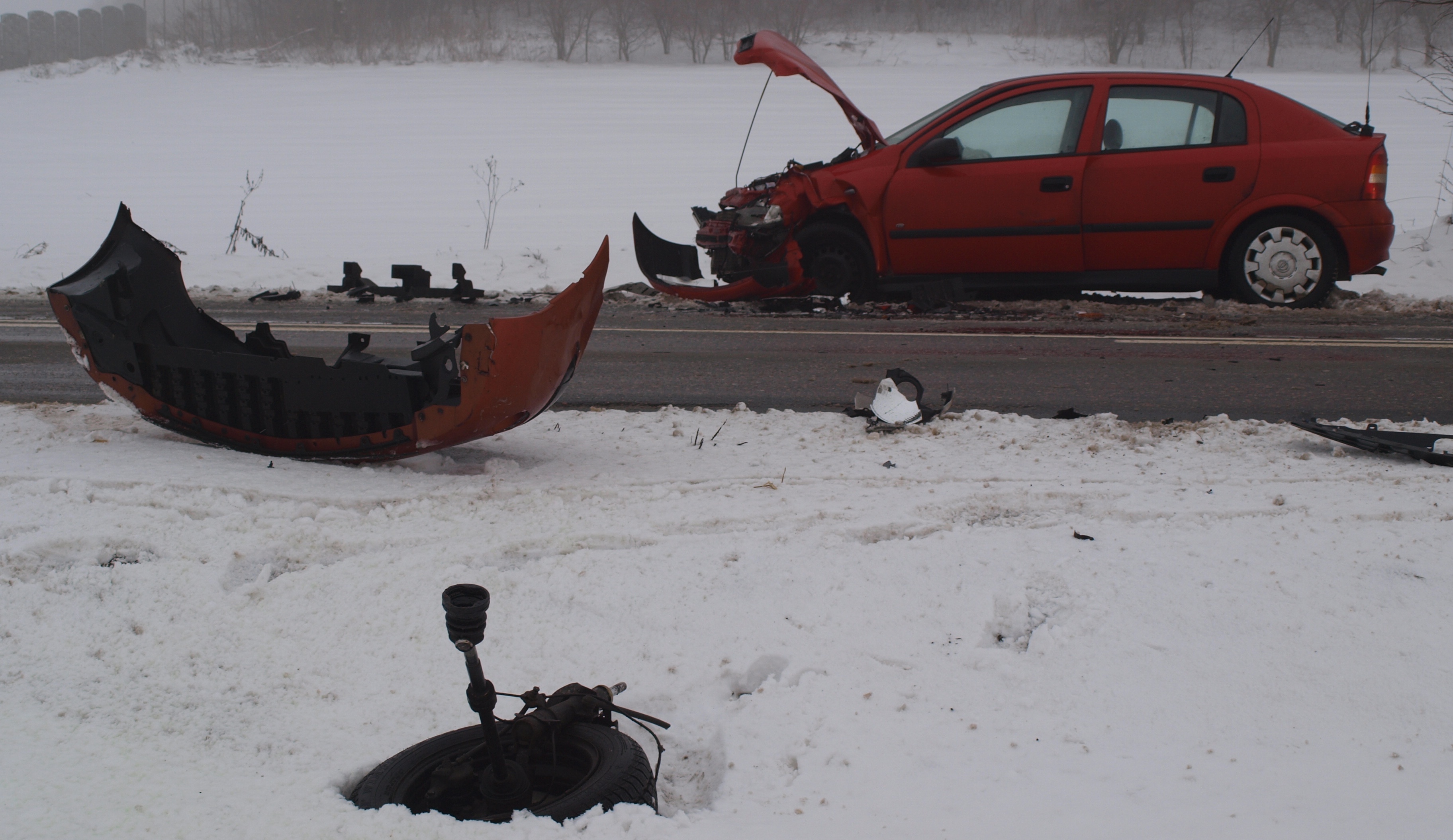 Do wypadku doszło o 9:05 w środę. Tuż za Brudnicami na wysokości „Łazów” w poślizg wpadł osobowy nissan. Jechał od strony Lubowidza. Samochód z impetem wpadł w nadjeżdżającego z naprzeciwka Opla Astrę. Doszło do czołowego zderzenia. Kierowcę oraz pasażera nissana przewieziono do szpitala.