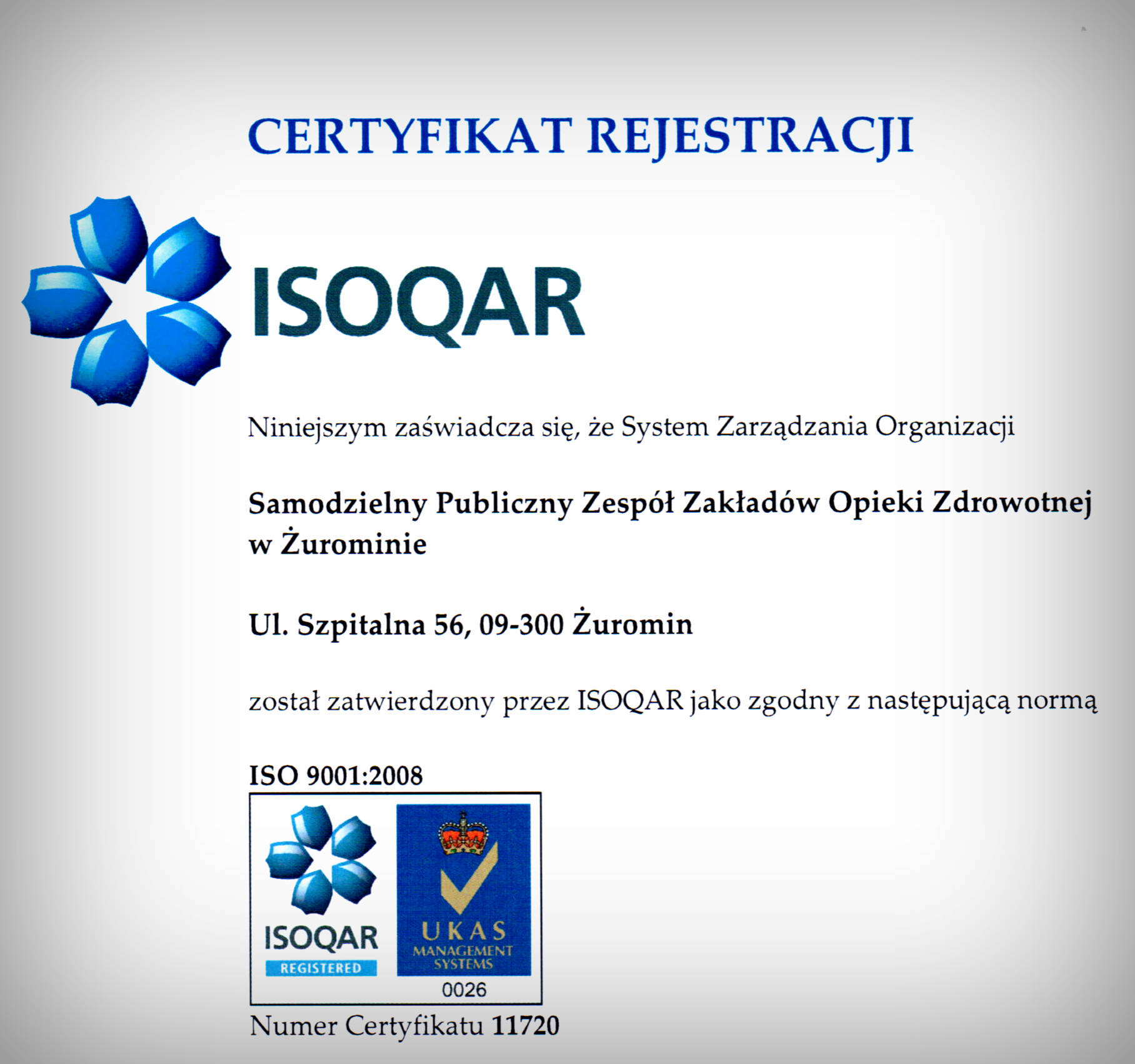 Prace związane z wdrożeniem Systemu Zarządzania Jakością według normy ISO są jednym z działań w żuromińskim szpitalu mających na celu podniesienie jakości usług medycznych świadczonych przez placówkę. W związku z tym dyrektor szpitala Zbigniew Białczak powołał pełnomocnika ds. Systemu Zarządzania Jakością. Została również określona polityka jakości szpitala. Zadaniem pełnomocnika i zespołu było określenie potrzeb, wymagań i oczekiwań pacjentów i pracowników. Po czym można było przejść do udoskonalenia i skorygowania działań. W tym celu zostały powołane w placówce audyty wewnętrzne. Po zakończeniu ich działań placówka poddała się działaniu audytu certyfikacyjnemu. 9 grudnia szpital poddał się badaniu. Komisja sprawdziła czy przygotowany i wdrażany system zarządzania jakością usług medycznych w zakresie lecznictwa szpitalnego, diagnostyki laboratoryjnej i obrazowej spełnia warunki określone w normie ISO 9001. System został oceniony pozytywnie. Szpital otrzymał Certyfikat Jakości.
