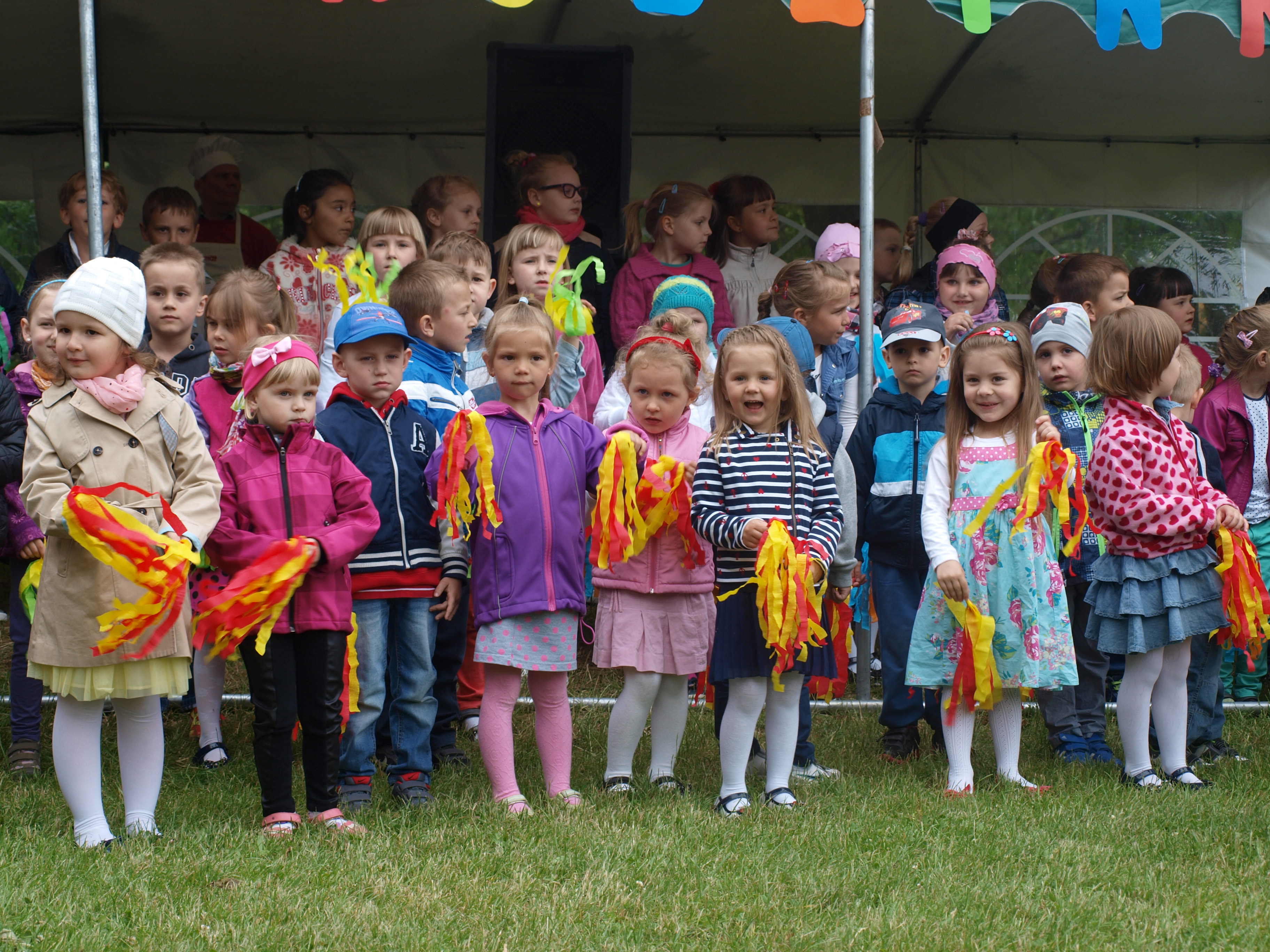 Piknik rozpoczął się około godziny 14.00. Na placu koło przedszkola zebrały się przedszkolaki ze wszystkich grup oraz ich rodzice. Wszystkich zebranych gości przywitała pani dyrektor, Małgorzata Orłowska. Po tym, jak pani dyrektor zaprosiła wszystkich do wspólnej zabawy, przedszkolaki rozpoczęły swoje występy artystyczne. Dzieci śpiewały piosenki dla swoich rodziców po polsku i po angielsku oraz zaprezentowały swoje umiejętności taneczne. Nawet grupa trzylatków świetnie sobie radziła z wykonaniem piosenek i starała się dorównać starszym kolegom i koleżankom. Oczywiście przedszkolaki zostały nagrodzone dużymi brawami. Na koniec występów dzieci wręczyły swoim rodzicom kolorowe kwiatki wykonane z papieru.