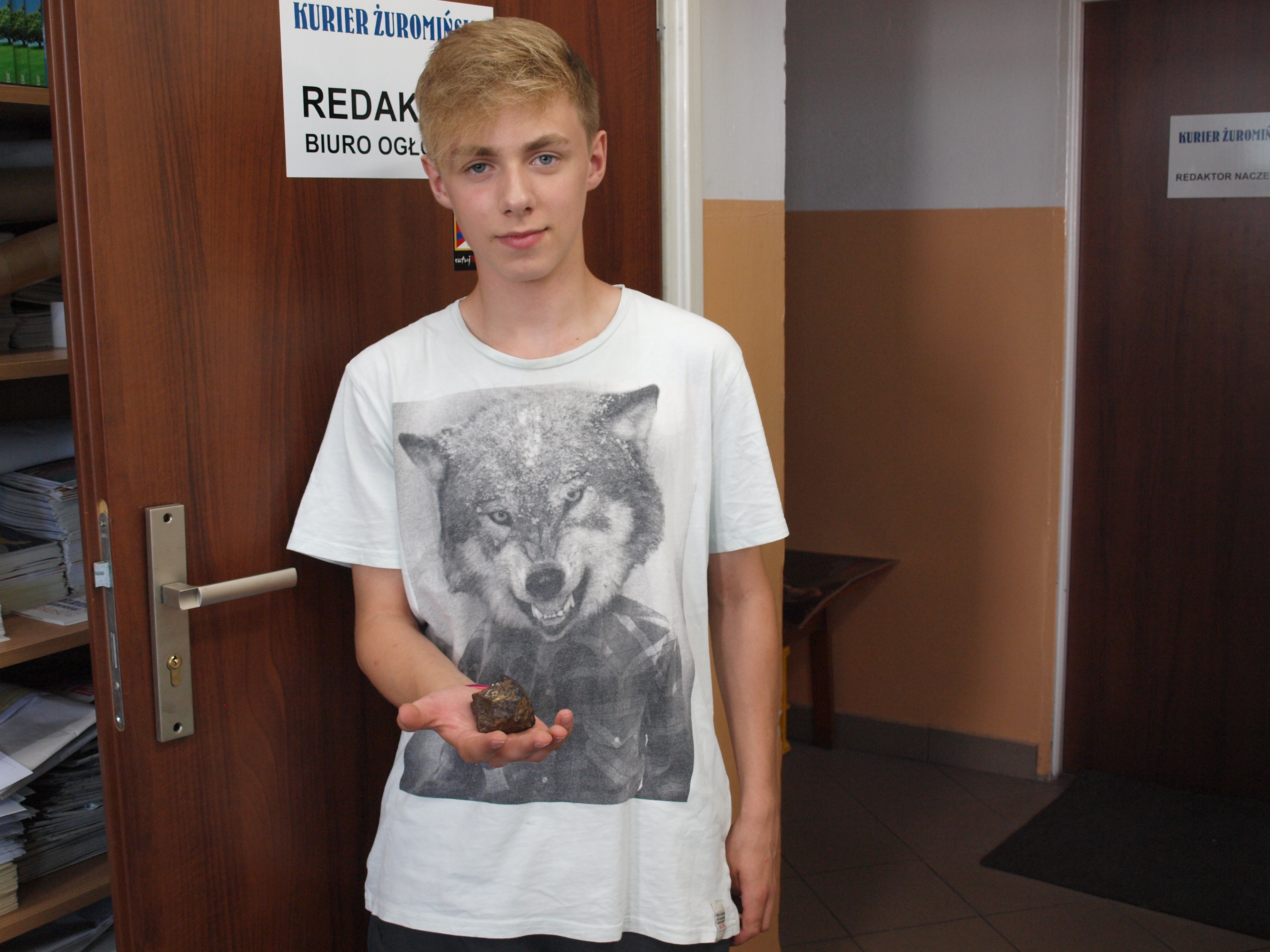Konrad sprawdził w internecie, jakie cechy mają meteoryty i wiele z nich w tym przypadku się zgadza. To co najistotniejsze to to, że znalezisko przyciąga magnez, ma nierówną powierzchnię, jest ciężki w porównaniu z jego wielkością. Choć stuprocentowej pewności nie ma, czy przedmiot pochodzi z kosmosu, to wiele wskazuje na to, że to meteoryt. Pewne jest również to, że nie jest to zwykły kamień. Znalazca jeszcze nie wie, co zrobi z tym niezwykłym przedmiotem. Po publikacji z pewnością ustalimy dokładnie, czym jest niezwykłe znalezisko. Przypominamy, że z piątku na sobotę towarzyszyło nam zjawisko spadających meteorów. Może to jeden z nich?